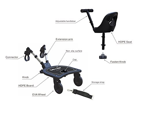 Quick on and off connector makes it easy in use and adjustable in height and width, cushioned wheels for extra comfort