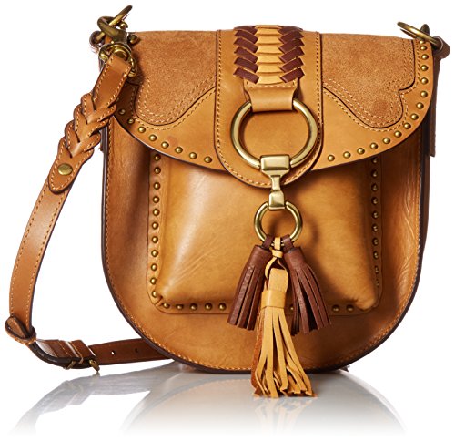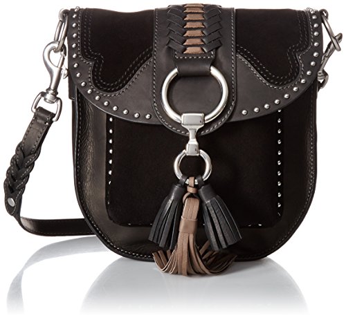 The ultimate leather saddle bag with suede western appliques, harness ring detailing, studs, and tassels