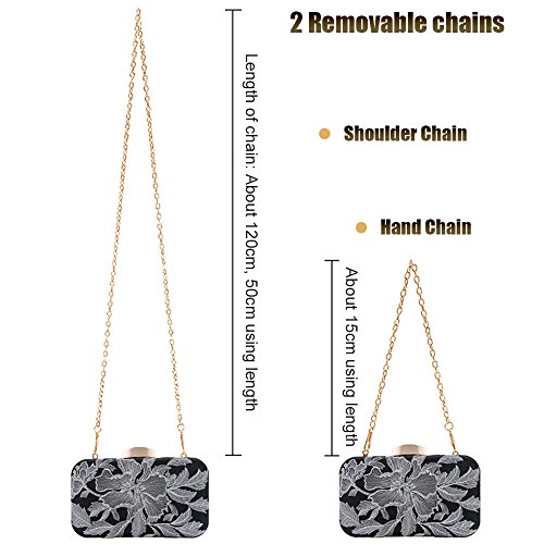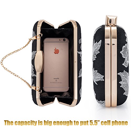 1. MATERIAL: This clutch bag made of high quality metal frame and synthetic with silver thread embroidery flowers decoration.