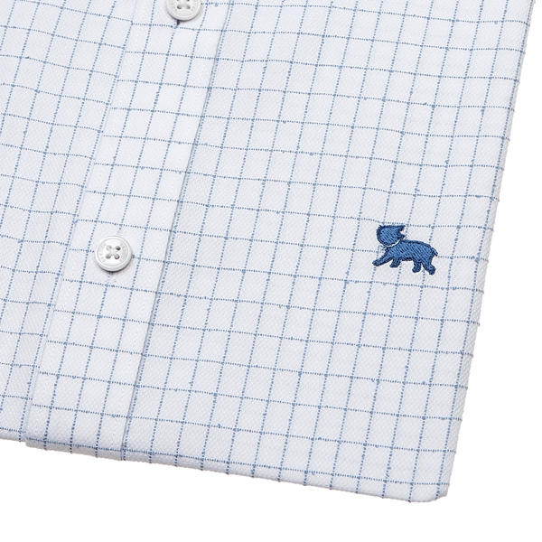 화이트와 은은한 블루의 팬시한 짜임이 돋보이는 미니 윈도우체크 원단으로