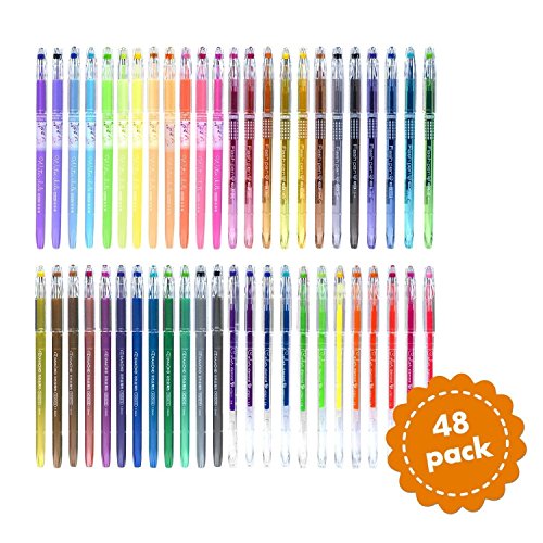 Packed 48 gel pens includs: 12 glitter & 12 glitter & 12 neon & 12 metal colors. Satisfy all your needs for art creation