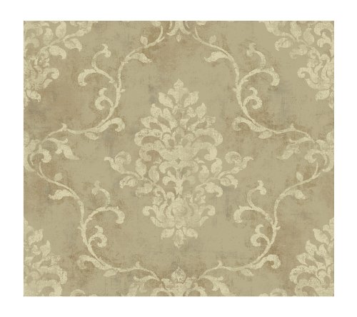 -. Title : York Wallcoverings Brandywine Damask Scroll Wallpaper
