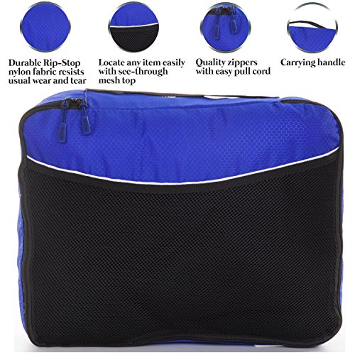 SAVE TIME AND STRESS finding your items and packing your luggage especially when you have a plane to catch, the packing cubes help you get done in a jiffy with different color cubes and a see through mesh top.