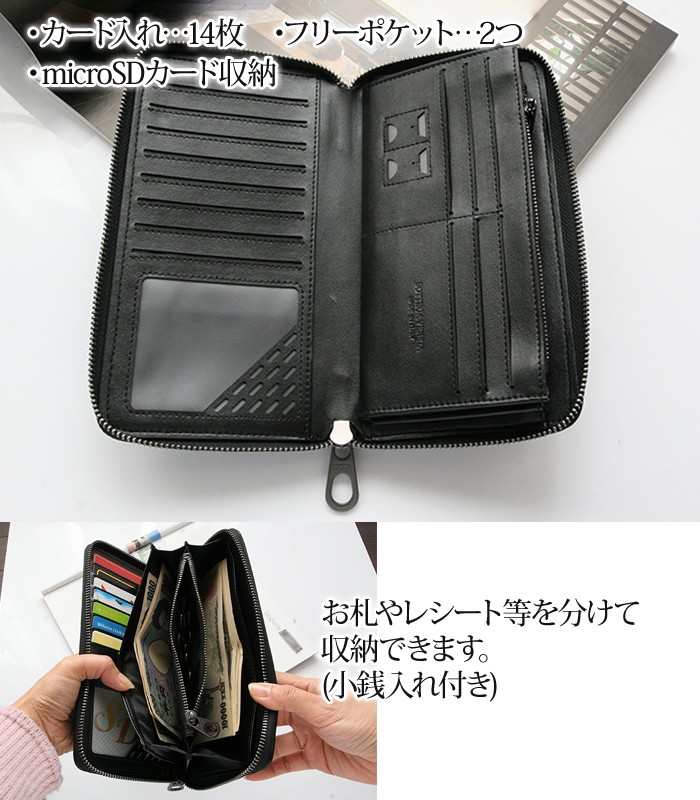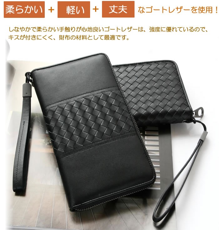 ★柔らかな羊革を使用しています、 ★たっぷり大容量! ビジネス財布としてもジャスト! ★ オシャレなイントレチャート! 父の日・母の日プレゼントにも最適♪ ★カード入れ…14枚、 フリーポケット…2つ、・microSDカード収納、 お札やレシート等を分けて 収納できます。 (小銭入れ付き) ★ ストラップ付きなので、 小物やスマートフォンなどを入れて、 クラッチバックとしても! ★ ブラックカラーに イントレチャートが個性的! ★ 便利な収納ケース付き! しっかり収納! 使い勝手バツグン! ★ プレゼントにもおすすめです! |