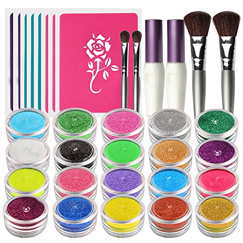OPHIR Glitter Tattoo Kit 20 Color Glitter Shimmer,30x Stencils Tattoo Body Art Design Kit for Children,Teenagers & Adults (Size, 20 Glitter and 30x Stenccils)