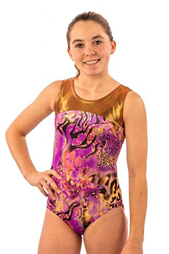 Lizatards Leotard Sparkle Safari- Girls Gymnastics Leotard in Sparkle Velvet and Copper Jewel