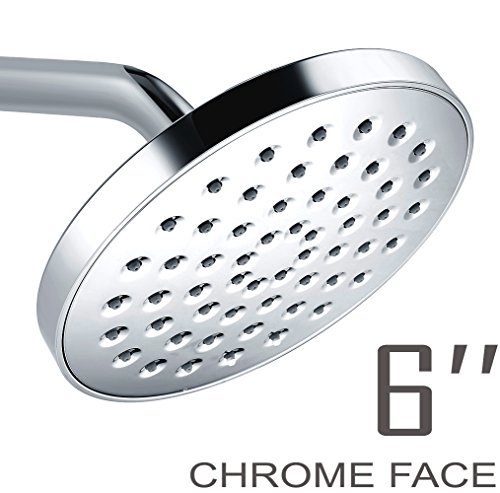 ANTI-CLOGGING and TOUCH CLEAN NOZZLES: 6 inch face with 56 Angled Nozzles provide a Wide spray that envelops you in the Full Coverage. Angle adjustable swivel Bass ball joint.