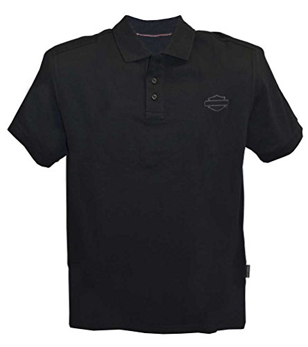 Product Description Harley-Davidson® Tori Richard Men's Classic Polo Shirt. Features a three button collar with an embroidered Bar Shield logo on chest. Made of 94% cotton and 6% elastane micro pique. Available in black, white and pewter colors. 0
