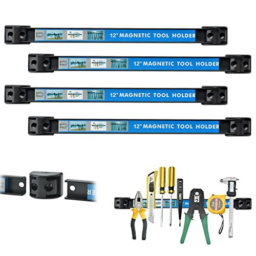 Alouette 4 Pieces 12 Inches Magnetic Tool Holder Racks,Metal Tool Organizer Bar for Garage&Workshop