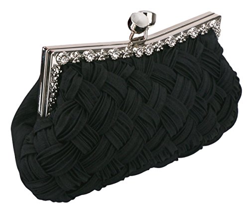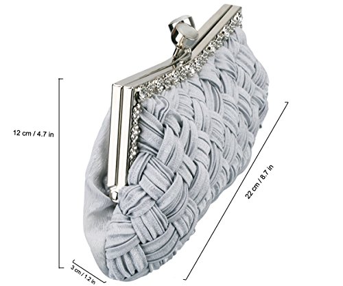 -. Feature : This Charming Tailor evening bag is made of quality satin, woven design on the front, plain satin on the back / Ingenious clasp closure, it is convenient to open and close / Interior open pocket, top quality Palladium Metal Frame with Embossment & Rhinestones details with crystal lock / 2 x Detachable O chain shoulder straps, the longest one with 24" drop, the other 8" drop. O chain is simple and elegant, and it won't hook your hair or scratch your clothes. Carry Way: This evening clutch bag can be carried in hand, on shoulder or cross body / W22 x H12 x D3 cm or W8.7" x H4.7" x D1.2" ins, spacious room for essentials like wallet, phone, key and lipstick etc. Large Android phone may NOT fit.