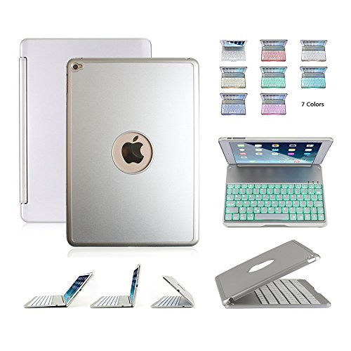 -. Title : Boriyuan iPad Air 2 Keyboard Case, Smart Aluminium Backlit Keyboard Folio Stand Cover For Apple iPad Air 2 with 7 Colors Backlight Wireless Bluetooth Keyboard +Screen Protector+Stylus, Silver