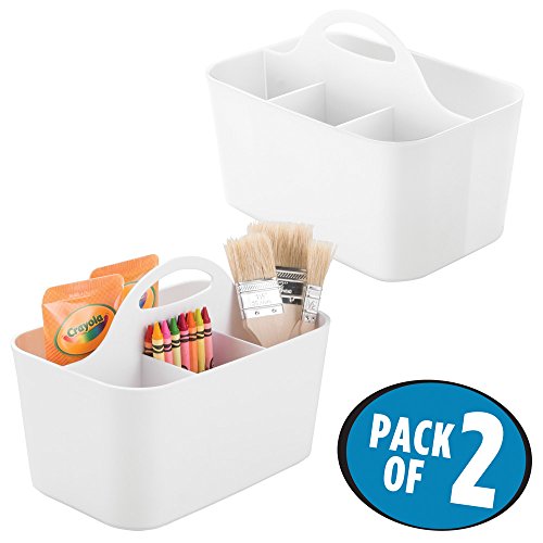 mDesign Art Supplies, Crafts, Crayons and Sewing Organizer Tote - Pack of 2, White