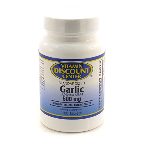 Studio : Vitamin Discount Center Publisher : Vitamin Discount Center Product Description Garlic has been used therapeutically in many cultures for thousands of years. With its high concentration of sulfur-containing compounds, garlic has consistently demonstrated an ability to support immune function, cardiovascular health and provide antioxidant protection. Our standardized garlic powder is equal to one half bulb of fresh garlic and in addition to its allicin yield, it contains all the naturally occurring sulfur compounds (thiosulfinates and gamma-glutamylcysteines) that are inherent to this herb. Each tablet is enteric coated for odor control and to avoid stomach acids which can cause allicin decomposition. As a dietary supplement, adults take one (1) tablet with meals, or as directed by a health care professional. Store in a cool, dry place and away from direct light. These statements have not been evaluated by the Food and Drug Administration. This product is not intended to diagnose, treat, cure, or prevent any disease. 0