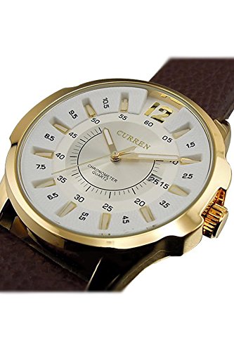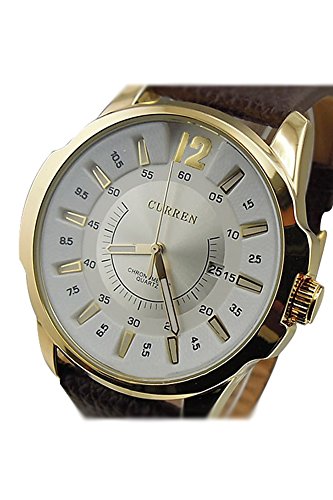 -. Title : CURREN Quartz Men's Sport Faux Leather Stainless Steel Wrist Watch brown