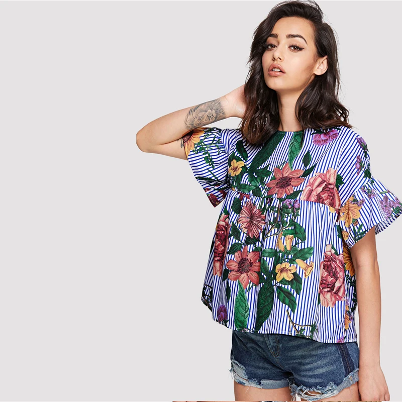 Sleeve Length/Type: Short Sleeve/Flounce Sleeve