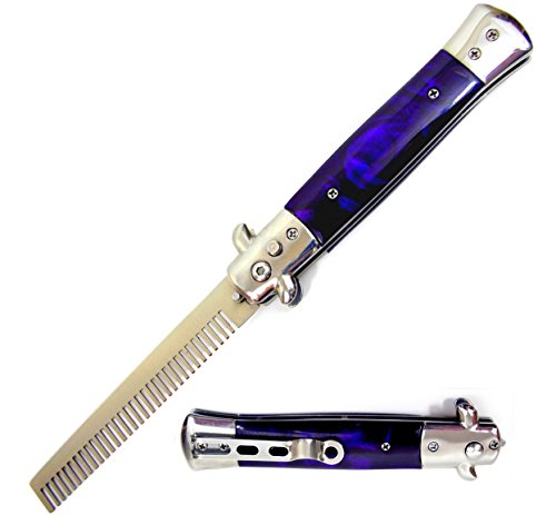 Royal Imperial Metal Switchblade Pocket Folding Flick Hair Comb For Beard, Mustache, Head PURPLE THUNDER Handle ~ INCLUDES Beard Fact Wallet Book ~...