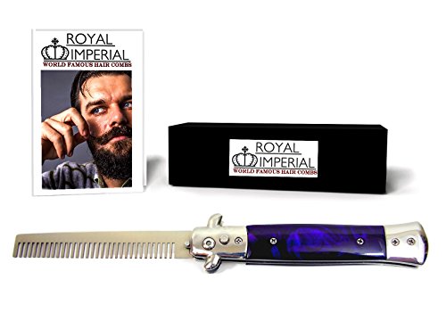 BUY THE STRONGEST COMB ON AMAZON: Royal Imperial offers a superior spring action design with durability to match that will ensure the long life of your comb. Beware of cheaper combs on Amazon. Our enhanced spring mechanism is built to last! The smooth shine of the polished handle and the overall classic design adds to the coolness factor. INCLUDES Beard Fact Wallet Booklet.