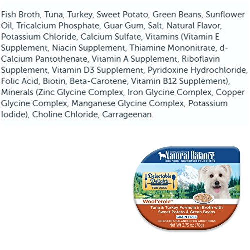 Includes 4 flavors cooked to perfection in a savory broth: (3) Fish 'N Chicks (chicken and salmon with sweet potato and green beans), (3) Duck'en-itas (duck and chicken with pumpkin and potato), (3) Surf 'N Turf (tuna and turkey with sweet potato and green beans), and (3) Woof'erole (chicken and tuna with pumpkin and green beans) -- 12 Cups Total, 2.75 Ounces Each