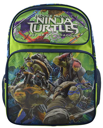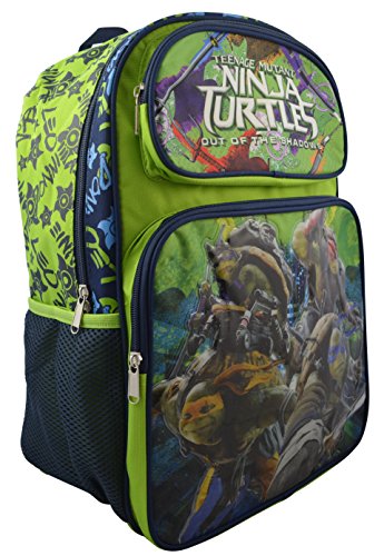 -. Brand : Nickelodeon -. Color : Blue/Green -. Department : boys -. EAN : 0708325404472 -. Feature : Teenage Mutant Ninja Turtles TMNT Kid's Deluxe 3D Design 16" School Backpack / Elastic net side pockets for water bottles and school supplies. One large zippered compartment for binder, books and folders. adjustable padded shoulder straps for additional comfort. / Two Front zippered pocket. Colorful and bright finishing. / Made of an easy to clean and very durable polyester. Brilliant colors for dazzling lunch time fun. Sparkly design! perfect for school and vacations! Well known characters that your child will love having with them. The perfect all year round! Adjustable padded shoulder straps for additional comfort. -. ProductGroup : Apparel -. ProductTypeName : LAGE -. Size : Large -. Title : TMNT Ninja Turtles Boys' Deluxe 3D 16" School Bag Backpack -. UPC : 708325404472
