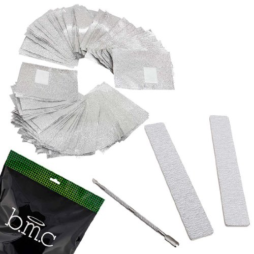 -. Binding : Misc. -. Brand : b.m.c -. Color : Silver -. EAN : 0700580466370 -. Feature : STOCK UP ON YOUR GEL REMOVAL NECCESITIES! Kit comes with 100 pre-cut aluminum soaking strips. / LOAD UP WITH ACETONE and set the cotton sponge on your nail and wrap to soften the gel polish. / BEFORE WRAPPING YOUR NAILS, use 1 of the 2 nail files (100+180 grit) to break the top lair of gel. / IT�S A MAGICAL TOOL FROM THE NAIL GODS. Kit also comes with (1) stainless steel cuticle pusher. / WHETHER YOU HAVE GEL OR ACRYLIC NAILS, this kit is a winner for all DIY nail art manicurist! -. Label : Bundle Monster -. Manufacturer : Bundle Monster -. Model : 700580466370 -. MPN : ntool-001 -. NumberOfItems : 1 -. PackageQuantity : 1 -. PartNumber : ntool-001 -. ProductGroup : Health and Beauty -. ProductTypeName : HEALTH_PERSONAL_CARE -. Publisher : Bundle Monster -. Studio : Bundle Monster -. Title : BMC UV Gel Nail Art Polish Acrylic Aluminum Nail Wrap Soaking Pad Remover Kit -. UPC : 700580466370