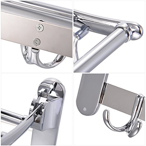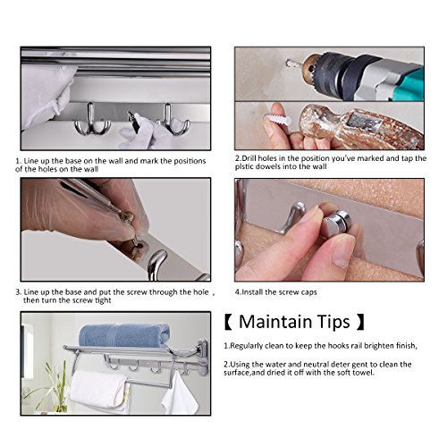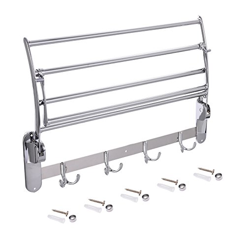 -. Title : Yunt Bath Towel Holder with Hook Foldable Stainless Steel Towel Rack Wall Mounted Organizer with Hooks for Home Hotel
