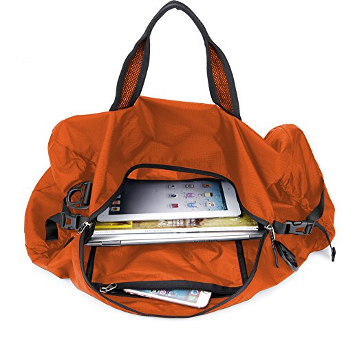 Product Description Comfort Handle Wrap The well-padded handle wrap with strong velcro attached makes the bag comfortable to carry when loaded with all your gear. Ultra Lightweight The Travel Inspira foldable bag is made of extremely lightweight 210D nylon. Weighing only 0.5 lbs, the bag helps you travel light. Water Resistant The bag is made from water resistant nylon fabric, and backed by an Travel Inspira 2-Year Warranty. (The zipper is not water resistant.) Unique color 7 colors for your selection, easy to spot yours among the others.