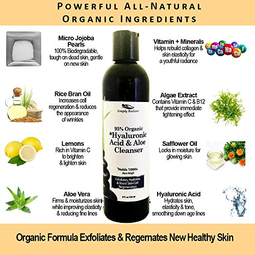 -. Title : Organic Hyaluronic Acid & Aloe Facial Cleanser with Micro Jojoba Pearls - Exfoliates & Rejuvenates Naturally