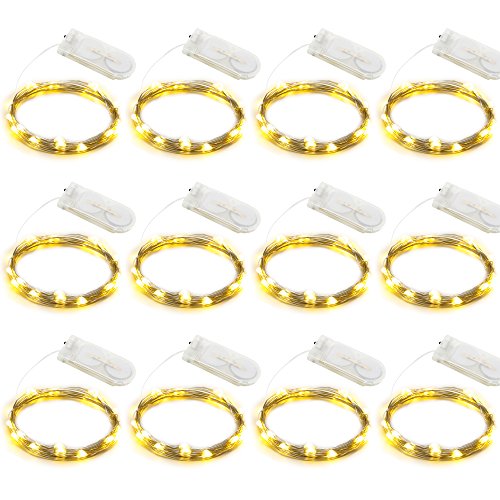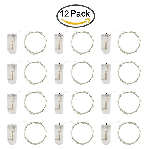 ER CHEN(TM) 12 Set of Micro 20 LEDs Super Bright Rope Lights Battery Operated 7 Ft Long Ultra Thin Silver Coating Copper Wire Starry String lights for Home Bedroom Party Tree,Warm White