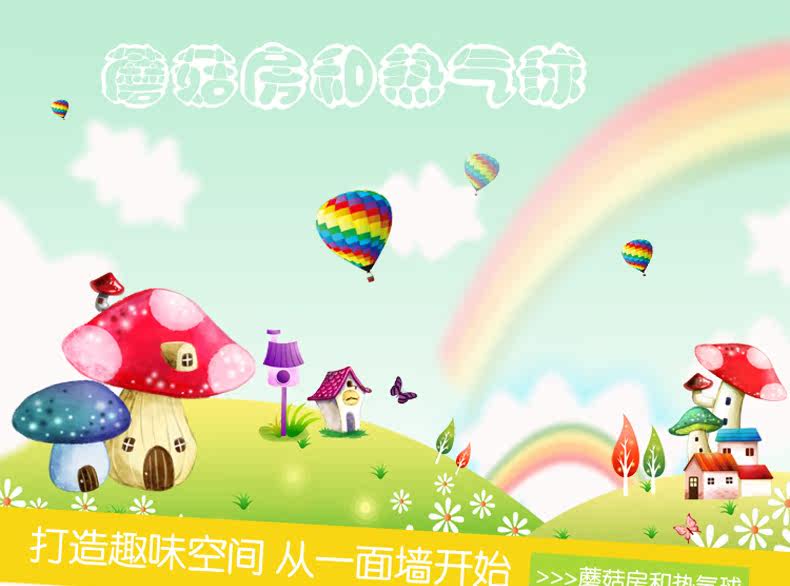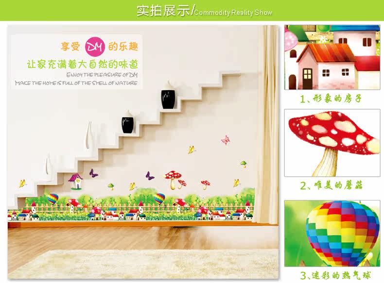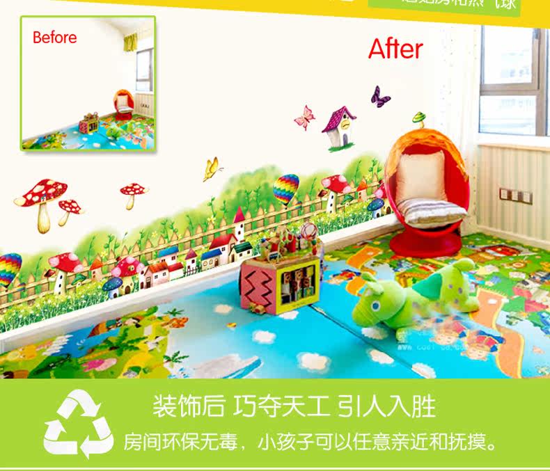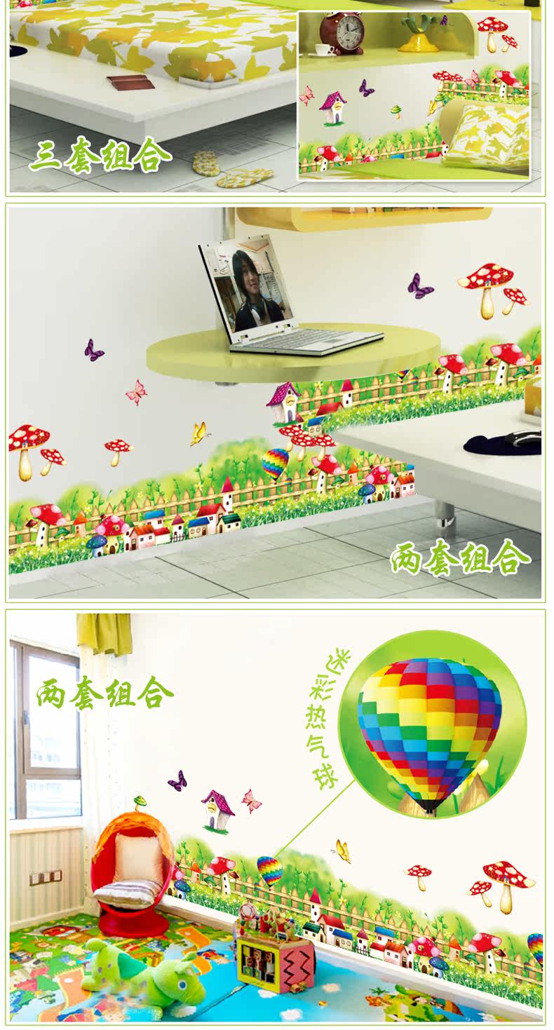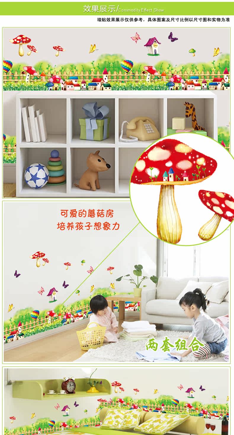 田园卡通可爱蘑菇草地儿童房腰线踢脚线墙贴纸客厅走廊玄关贴画