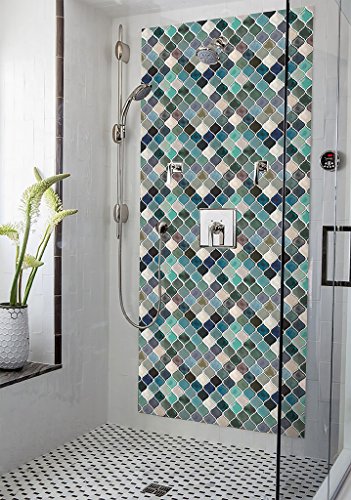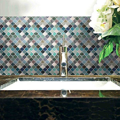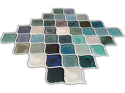 HUE DECORATION Turquoise Multi Peel and Stick Arabesque Tile Backsplash, 10"x11"(6-Pack)