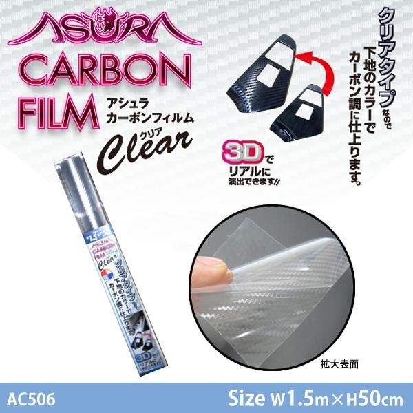 クリアタイプなので、下地カラーでカーボン調に仕上がります。 製造国:台湾 素材・材質:軟質塩化ビニール 商品サイズ:W1.5m×H50cm ※サプライヤー直送品 ご注文後、当日~1営業日後の出荷となります【商品名】アシュラカーボンフィルム W1.5m×H50cm クリアー AC506