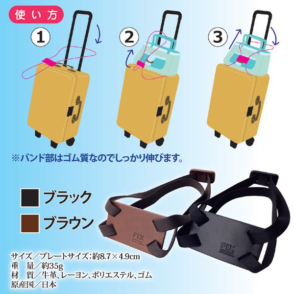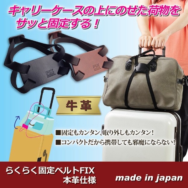 【商品名】らくらく荷物固定ベルトFIX(旅行用品/バッグ用ベルト) 本革仕様 コンパクト 日本製 ブラック
