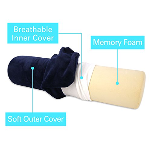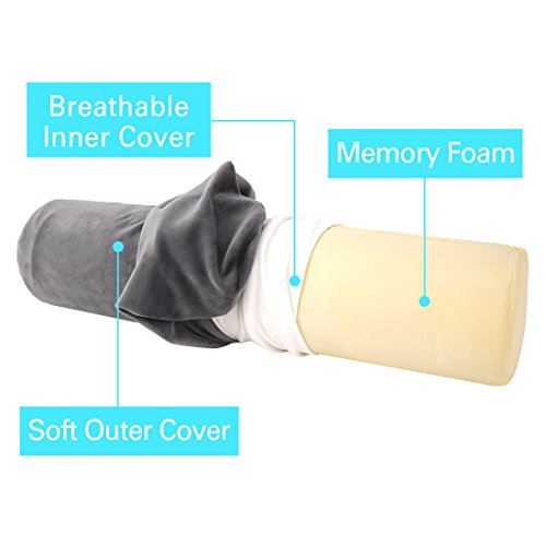-. Feature : Roll Memory Foam - Made from highly resilient memory foam that comfortable cushions your body as you sit. It's great for back and under your knees, making this roll extremely versatile. Provides excellent leg, lumbar support. / With this comfort memory foam roll, reacts fast to provide relax and comfort. It targets pressure points in the right areas to give you great comfort and support. / Removable Washable Covers - Removable and washable soft pillow case included for easy cleaning. Outer Cover Material: Flannel/Organic Cotton. Inner Cover Material: 100% Cotton. / NOTE - It is far too hard for intended purpose of neck pillow, Cannot be used as a neck pillow for sleep,because it is a sturdy pillow with lots of support.But if you using it to position and support your body it's perfect. You can use it to help with stretching and physical support, etc. / It is designed to help your arms and legs more relax.