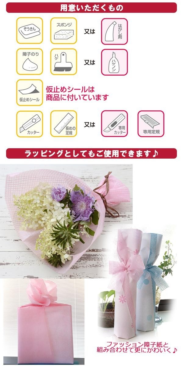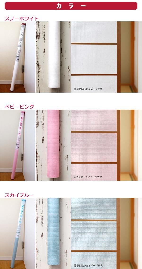 | メッシュ素材の障子紙です。メッシュ素材でも紙の破裂強度はJIS規格の2倍以上!!障子紙としてでなく、ラッピングなどでもご使用いただけます。 |