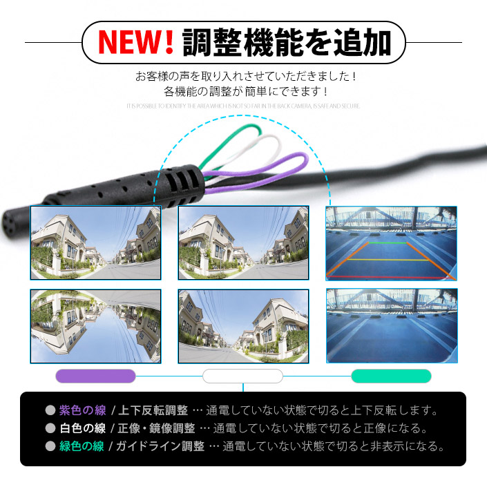 ●カメラのケーブルから出ている黒い輪っか状のケーブルを通電していない状態で切ると、ガイドラインの表示/非表示を変更することができます。