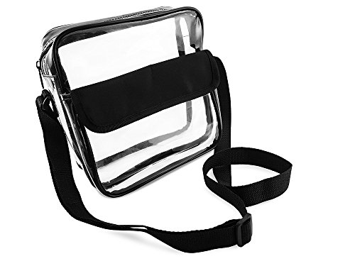 Binding : Apparel Product Description Stadium Compliant Clear Purse Easily Converts to Clear Cross Body Bag or Clear Satchel This is a clear cross-body bag with a long adjustable strap that makes it a multifunctional accessory. At its longest adjustment the clear bag strap easily sits over the shoulder while the clear bag itself rests comfortably on your hip. At the shortest adjustment the strap becomes a double handle allowing you to carry it as a clear handbag. There are two pockets on these clear handbags. One large roomy pocket with a zipper enclosure on the top. It is large enough to carry your cell phone, wallet, keys, and a 12 oz water bottle. The second pocket is a smaller one located in the front with a Velcro flap which allows easy access to things like your football game tickets, ID, or credit card. Of all the stadium L approved clear bags, stadium clear tote bags, and clear tote bags for work, this one is easily the most fashionable. It is also waterproof (when not submerged) keeping your things dry if a light shower rolls in. Product Features: ? Long Adjustable Strap (total over shoulder length of 32") ? 2 Roomy Pockets (1 large, 1 small) ? High Fashion Clear Messenger Bag Design Additional Uses ? Clear Travel Bag ? Clear Toiletry Bag ? Clear Lunch Bag ? Clear Security Bag