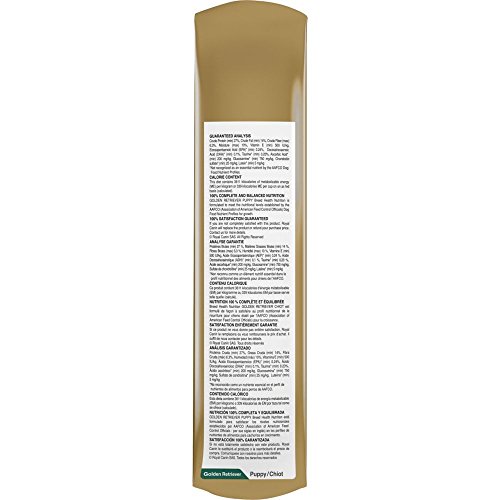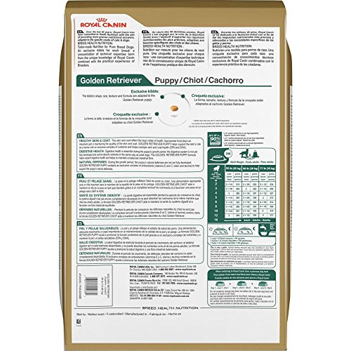 -. Binding : Misc. -. Brand : Royal Canin -. Department : dog-dry-food -. EAN : 0030111454331 -. Feature : Omega 3 and 6 fatty acids to support a healthy skin and coat in the Golden Retriever over 15 months old / L-carnitine to support heart health and help muscles work efficiently in the Golden Retriever / Antioxidants to neutralize free radicals and support cognitive function in the Golden Retriever -. Label : Animal Supply Company (RC) -. LegalDisclaimer : Must be at least 18 & over to purchase. Items only ships within United States. -. Manufacturer : Animal Supply Company (RC) -. Model : RC454330 -. MPN : RC454330 -. PackageQuantity : 1 -. PartNumber : RC454330 -. ProductGroup : Pet Products -. ProductTypeName : PET_SUPPLIES -. Publisher : Animal Supply Company (RC) -. Size : 30 pounds -. Studio : Animal Supply Company (RC) -. Title : ROYAL CANIN BREED HEALTH NUTRITION Golden Retriever Puppy dry dog food, 30-Pound -. UPC : 030111454331