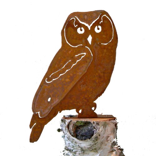 Elegant Garden Design Owl, Steel Silhouette with Rusty Patina