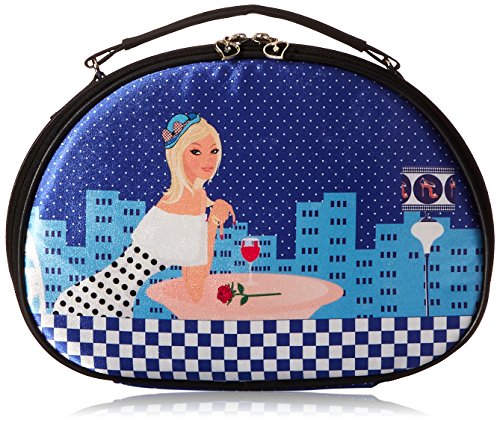 Seaich Round Retro Salon Cosmetic Bag, Blue
