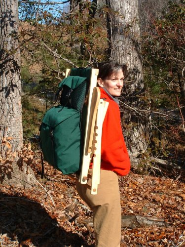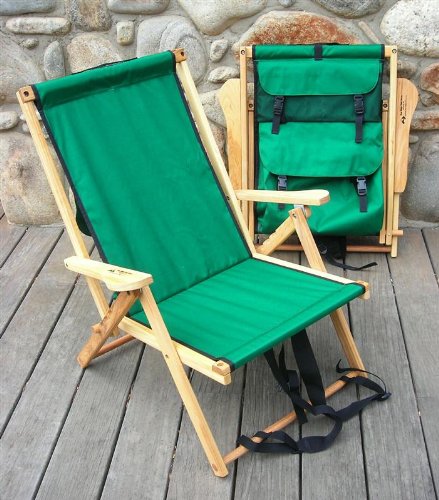 Studio : Blue Ridge Chair Works Publisher : Blue Ridge Chair Works Product Description BPCH01WF Fabric Color: Forest Green Pictured in Forest Green -Ash wood construction -Stainless steel hardware -Comfortable polyester seat back -Adjusts from reclining to upright with ease -Folds easily and transforms into a backpack for easy carrying -Oversized cargo pocket holds towel, picnic supplies, snacks -Available in Navy Blue, Forest Green -Made in the USA -Open Dimensions (inches): 24'W x 26'D x 34'H
