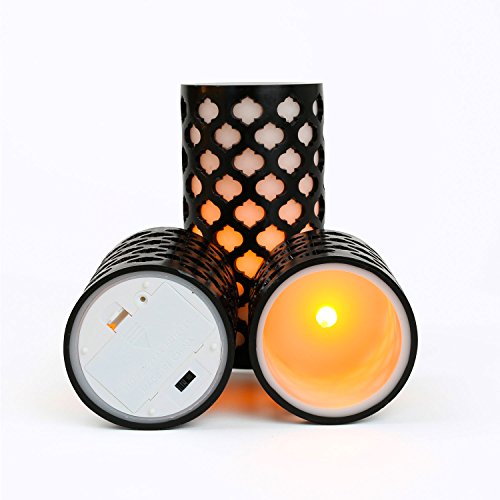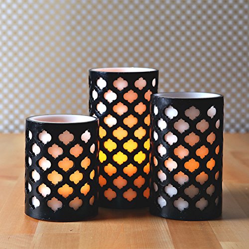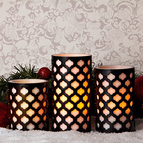 -. Title : Set of 3 Moroccan Gate Flameless Wax LED Candles with Timer - Batteries Included