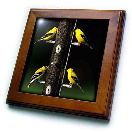 3D Rose American Goldfinches Males on Thistle Feeder-Marion-IL Framed Tile, 8" x 8"