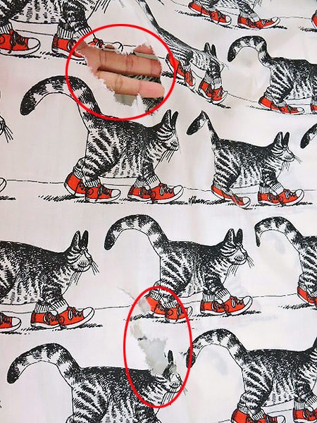 大きな破れや薄く大きな黄シミがあります。