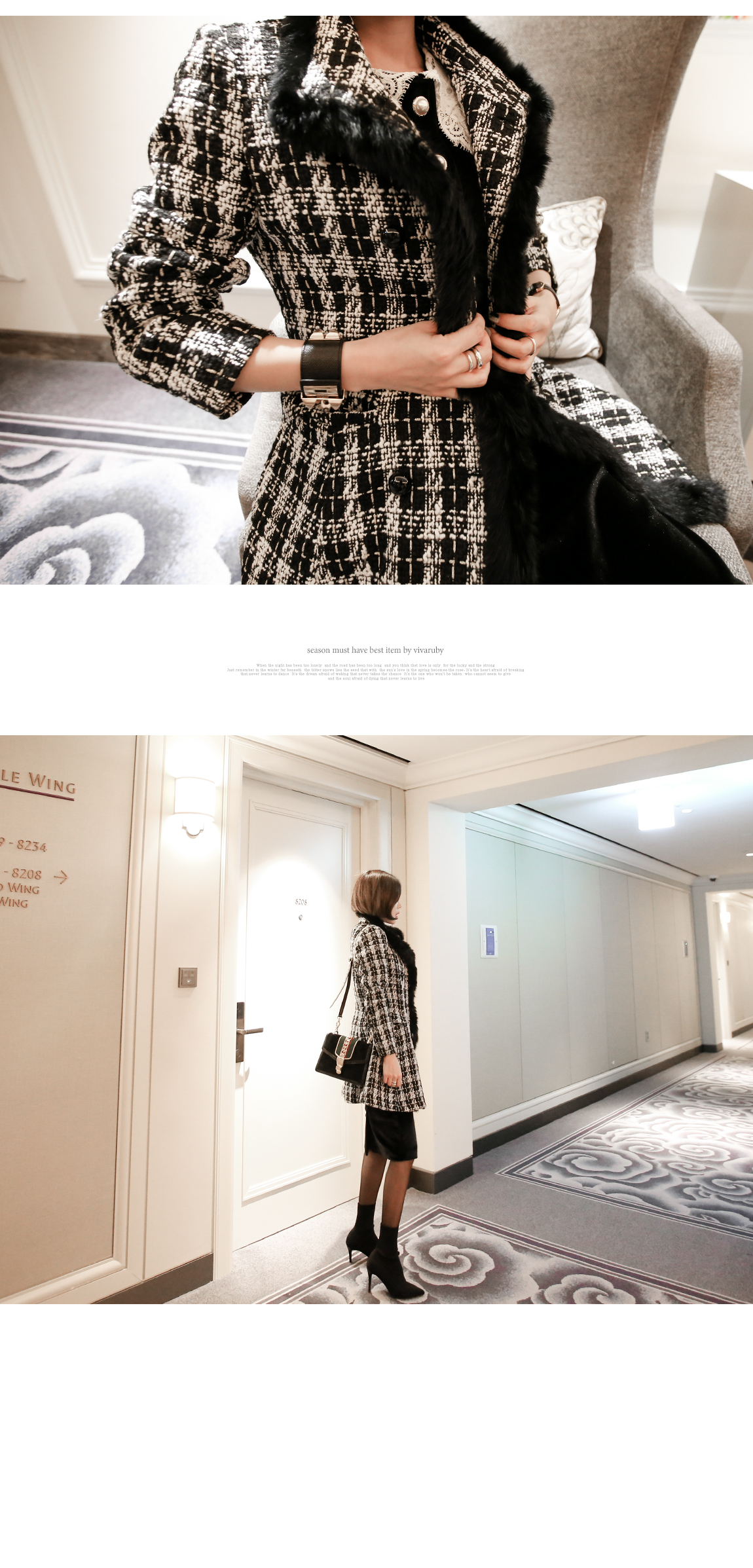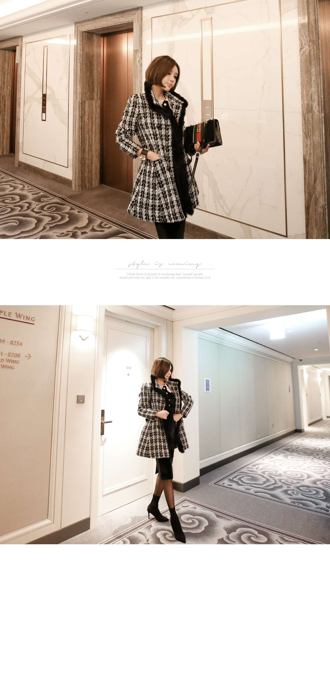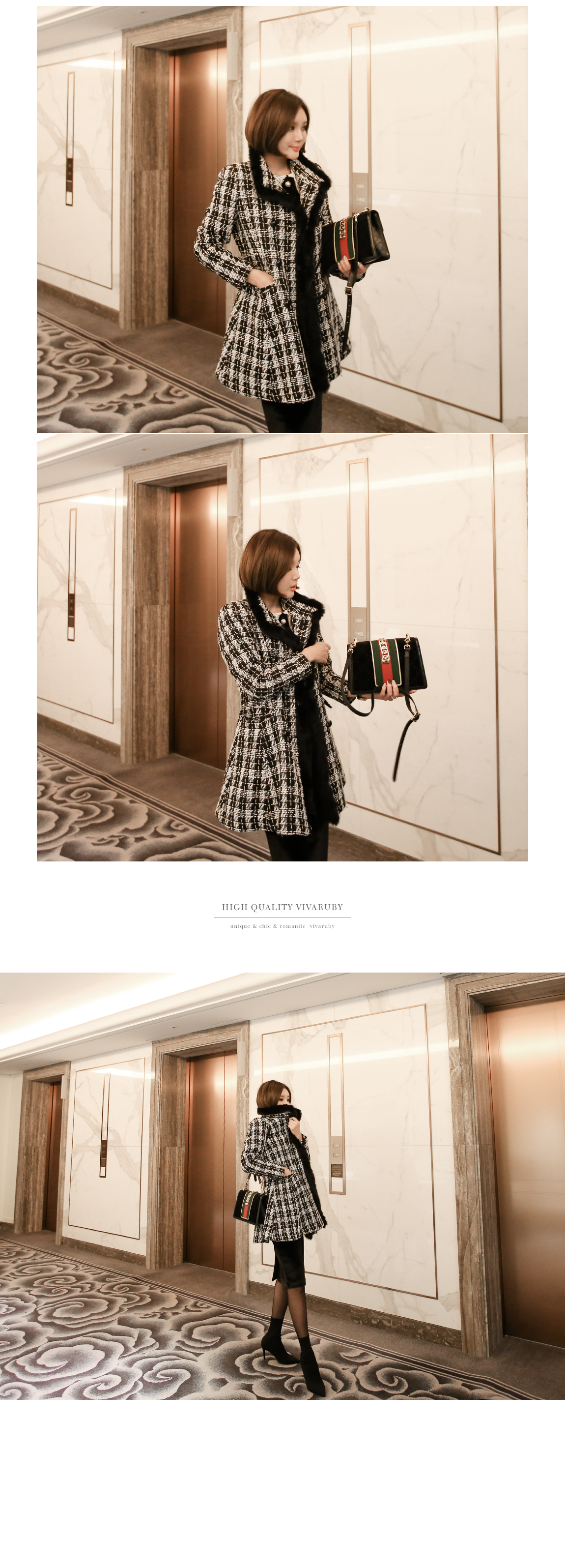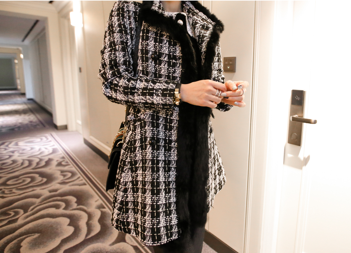「チェックトリミングコート」