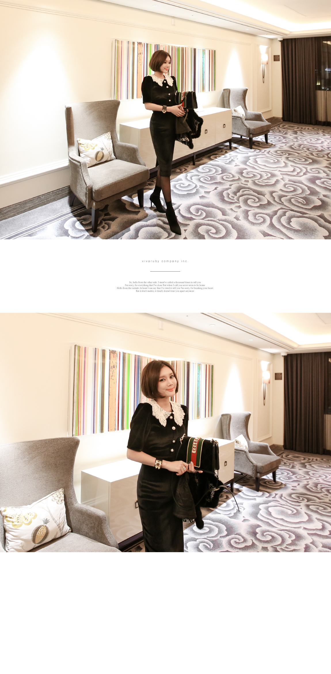 ボタンをすべてクロージングしてミニワンピースのように演出されて