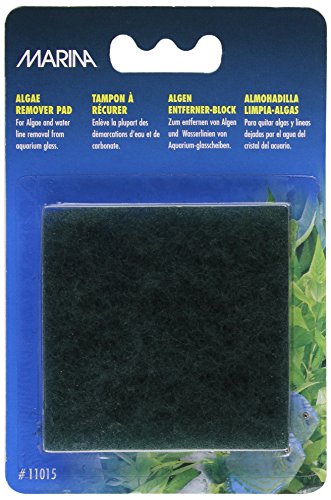 Marina algae remover pad effectively removes algae and most other deposits on aquarium surfaces, without scratching the glass. The non-toxic pad will not affect water chemistry or harm tank inhabitants. The pad is ideal for hard to reach places. This product weighs 0.03-pound. Measures 4-inch length by 2/7-inch width by 6-inch height.Feature