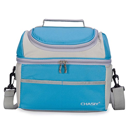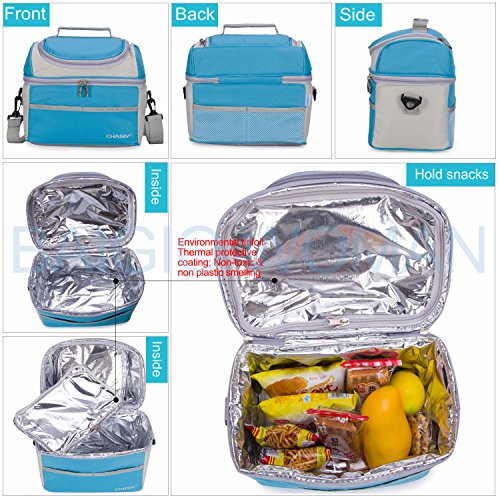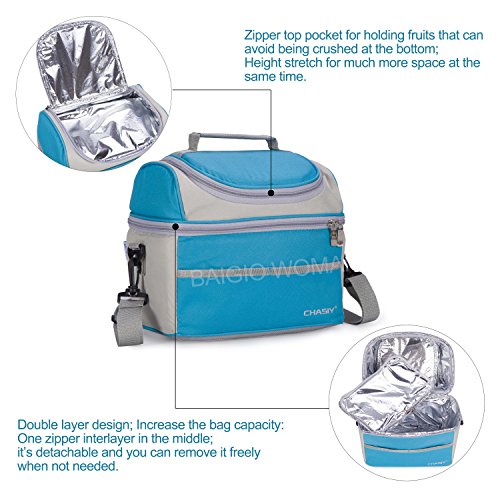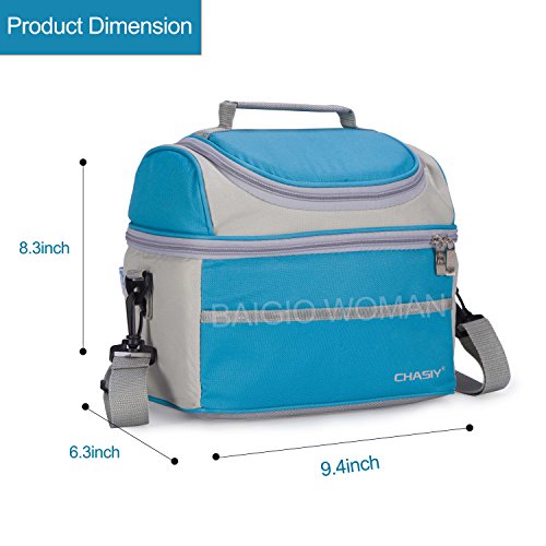 Double Deck Adult Lunch Box Insulated Lunch Bag Large Cooler Tote Bag for Men Woman (Blue)