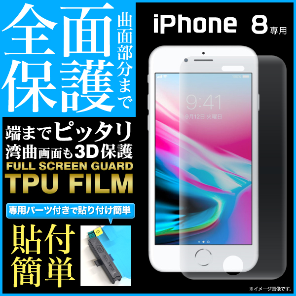iPhone8の液晶画面を守る液晶全面保護TPUフィルム。