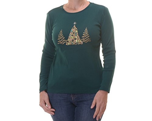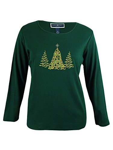 Karen Scott Women's Long Sleeve Tree-Print Holiday Tee