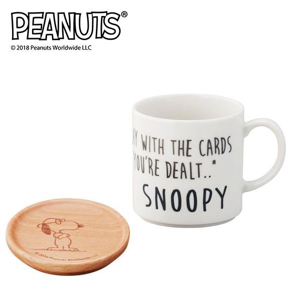 フタにもなる木製コースターが便利です♪ 製造国:日本(コースター:中国) 素材・材質:マグ:磁器コースター:天然木 商品サイズ:マグ:Φ85×H85mm、コースター:Φ90(内径:75)×H15mm 重量:マグ:260g、コースター:45g 仕様:電子レンジ・食洗機可(マグのみ)容量:350ml ※サプライヤー直送品 ご注文後3~4営業日後の出荷となります【商品名】SNOOPY スヌーピー コースター付マグ スヌーピー SN241-11C